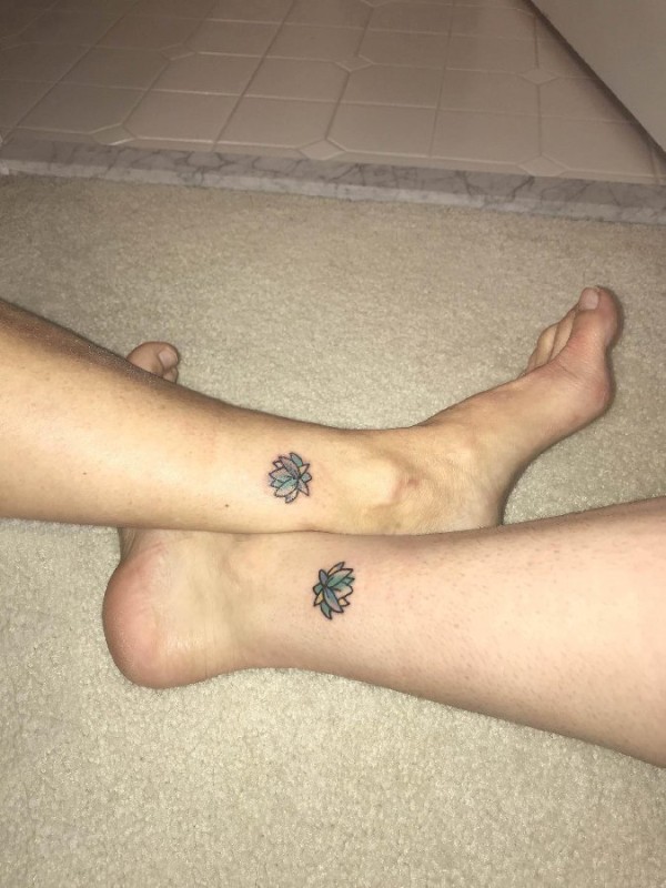 莲花纹身小图 女生小腿上彩色的莲花纹身图片