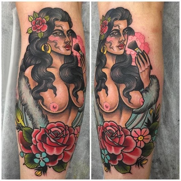女生人物纹身图案 女生小腿上女生人物纹身图案