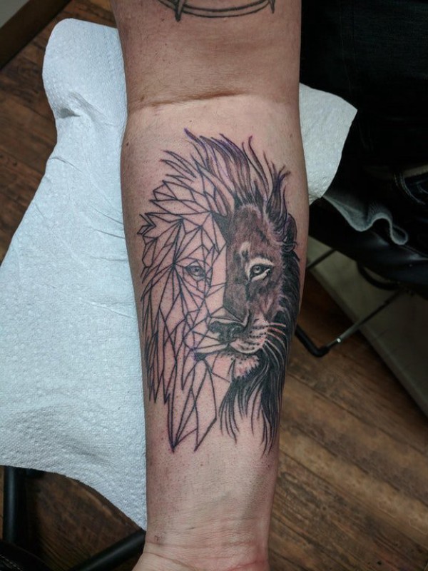 狮子王纹身 男生小臂上黑灰的狮子王纹身图片
