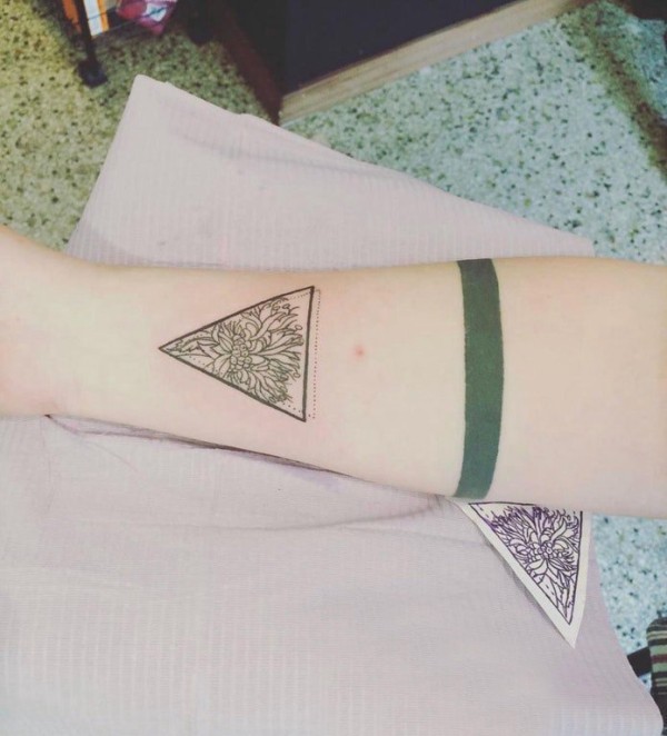 三角形纹身图 女生手臂上植物和三角形纹身图片