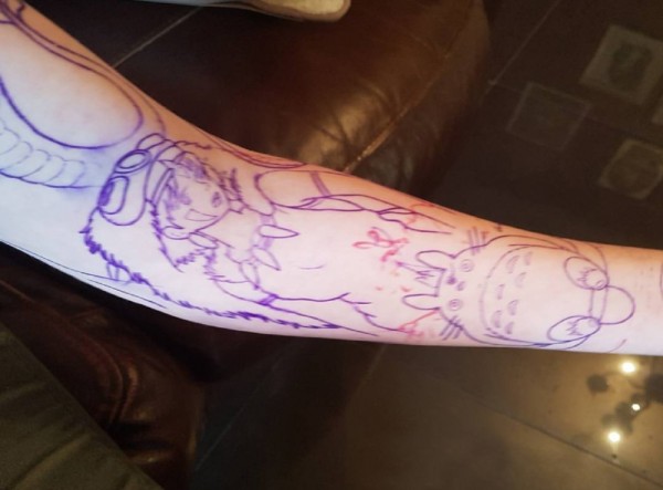 龙猫纹身图案 女生小臂上龙猫和人物纹身图片