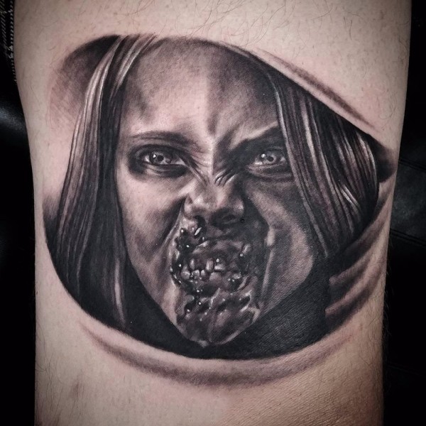 多款恐怖的黑灰色现实风格纹身图案来自乔恩