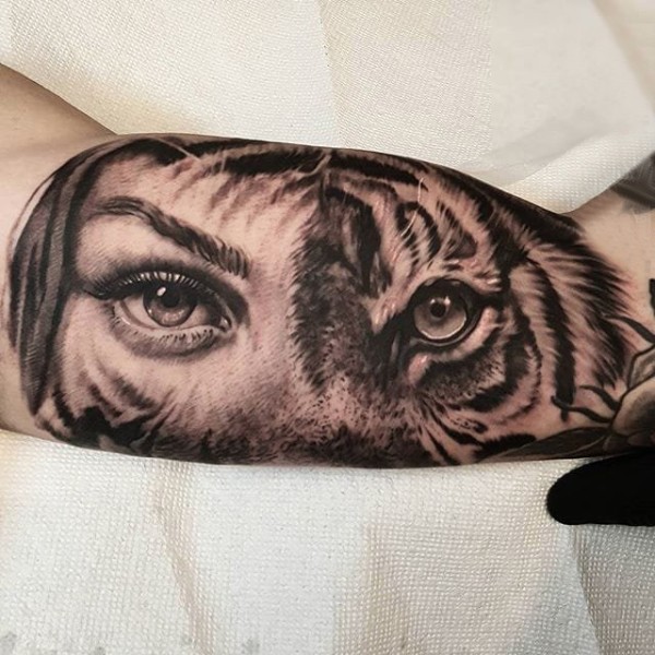 老虎图腾纹身 多款黑灰纹身点刺技巧老虎纹身图案