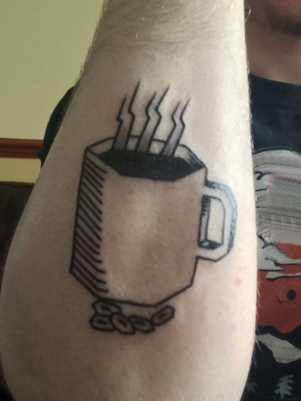 咖啡纹身图案 男生手臂上黑灰的咖啡纹身图片