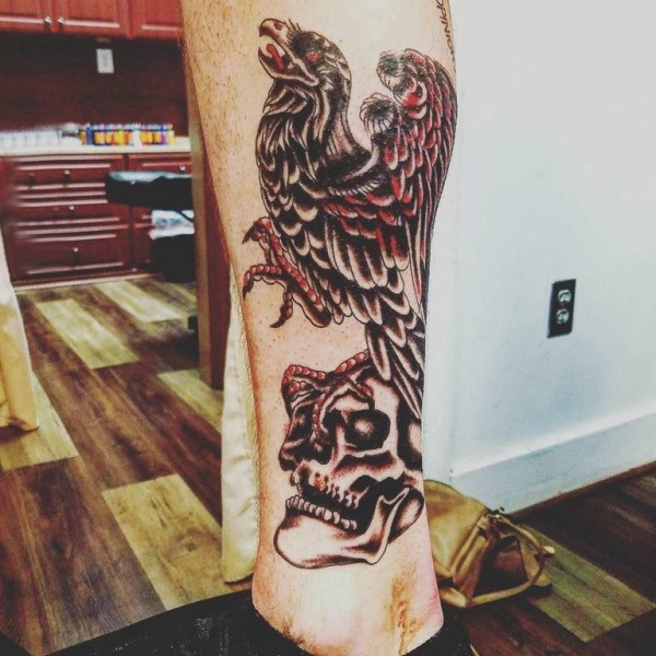老鹰和骷髅纹身图案 男生小腿上老鹰和骷髅纹身图片