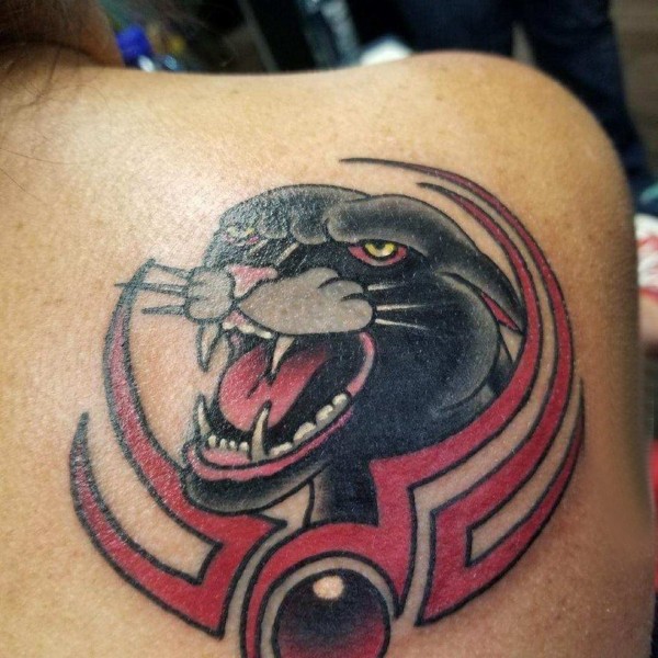 豹子头纹身 女生肩膀上创意的豹子头纹身图片