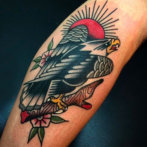 胸部道人加燕子图案半胛纹身