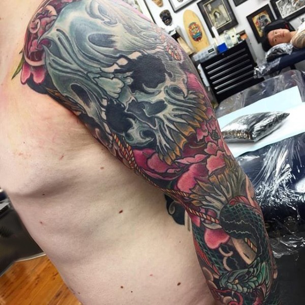 日式手彫刺青作品—半甲龙很感谢客户认可手彫刺青,手彫是日本纹身的手工雕刻技术,时间可以追溯到日本17世纪的江户时代。19世纪,手彫技术被日本黑帮挪用,被用作入会仪式,象征着从此就是江湖中人。在日式传统
