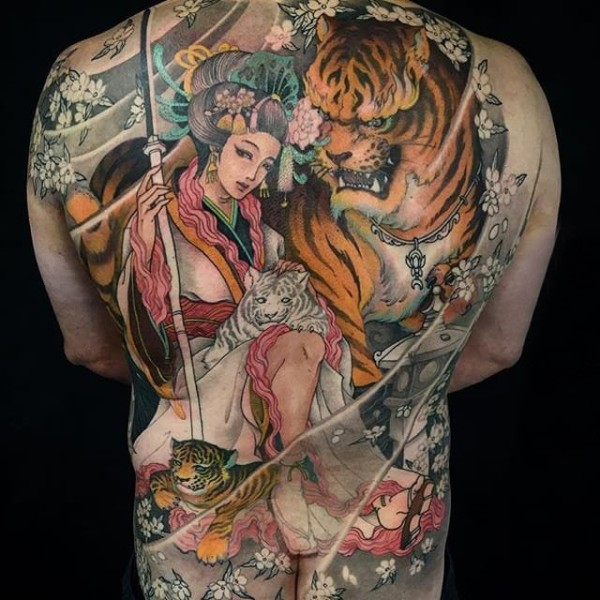 艺伎纹身--一组独特创意的日式艺妓纹身图案作品