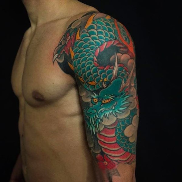 日式手彫刺青作品—半甲龙很感谢客户认可手彫刺青,手彫是日本纹身的手工雕刻技术,时间可以追溯到日本17世纪的江户时代。19世纪,手彫技术被日本黑帮挪用,被用作入会仪式,象征着从此就是江湖中人。在日式传统