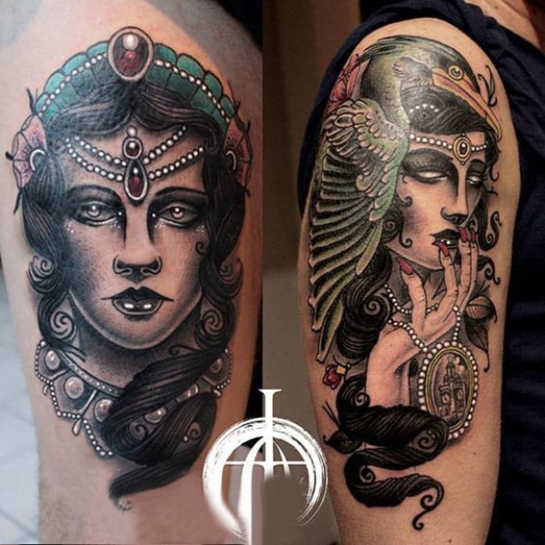 女性人物纹身图案 男生大臂纹身女性人物纹身图案