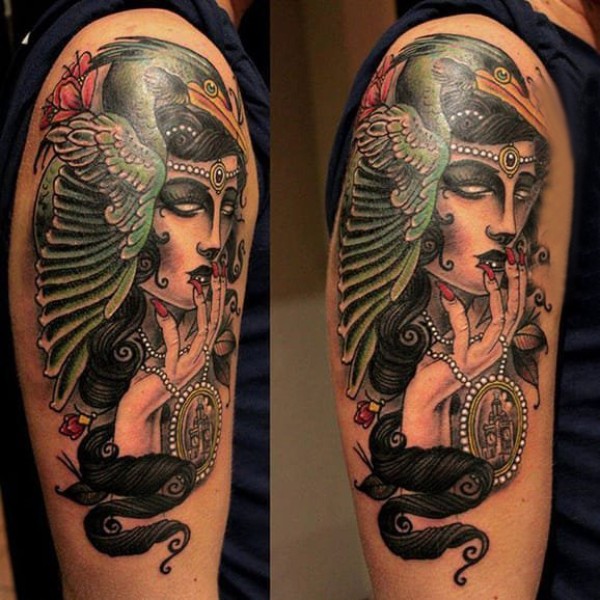 女性人物纹身图案 男生大臂纹身女性人物纹身图案