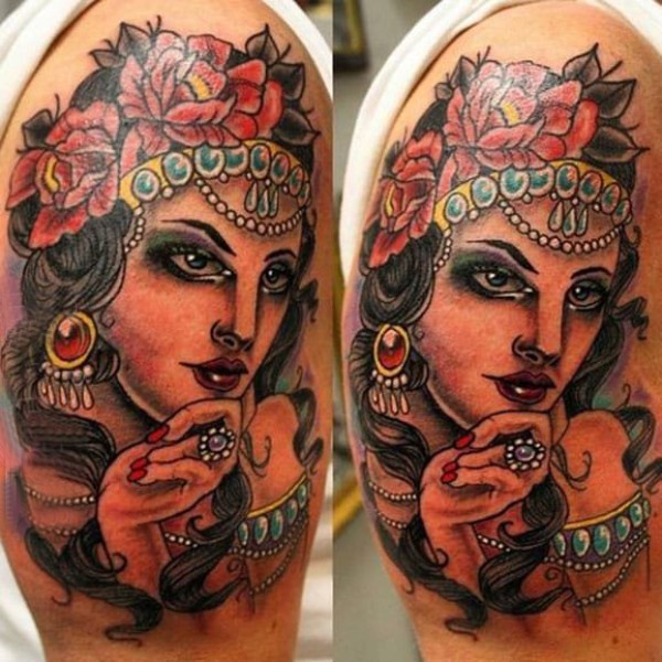 女性人物纹身图案 男生大臂纹身女性人物纹身图案