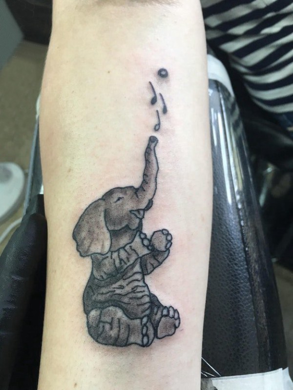 手臂内侧纹身图案 女生手臂上黑色的大象纹身图片