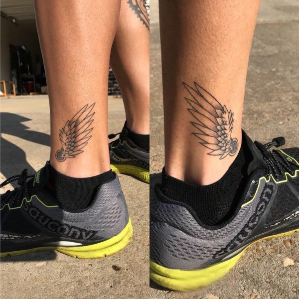 天使翅膀纹身素材 男生小腿上黑灰的翅膀纹身图片
