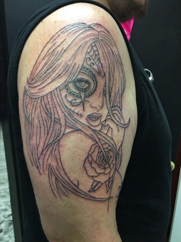 双大臂纹身 男生大臂上个性的人物肖像纹身图片