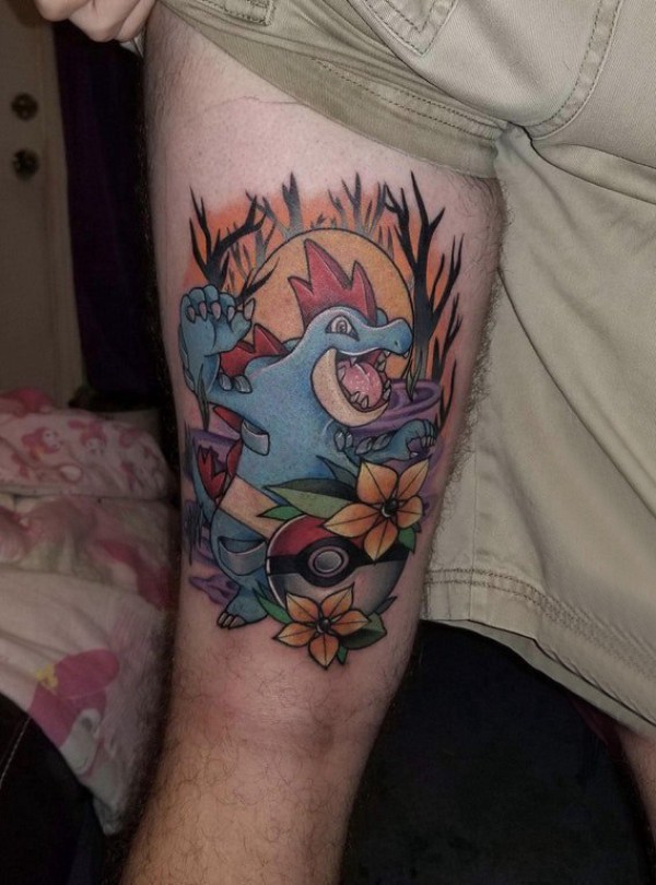 卡通可爱纹身图案 男生大腿上花朵和卡通纹身图片