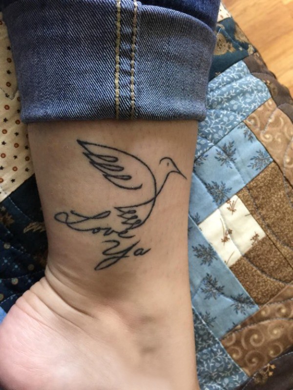 抽象线条纹身 女生小腿上黑色的鸟纹身图片