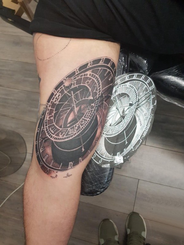 时钟纹身 男生手臂上黑色的时钟纹身图片