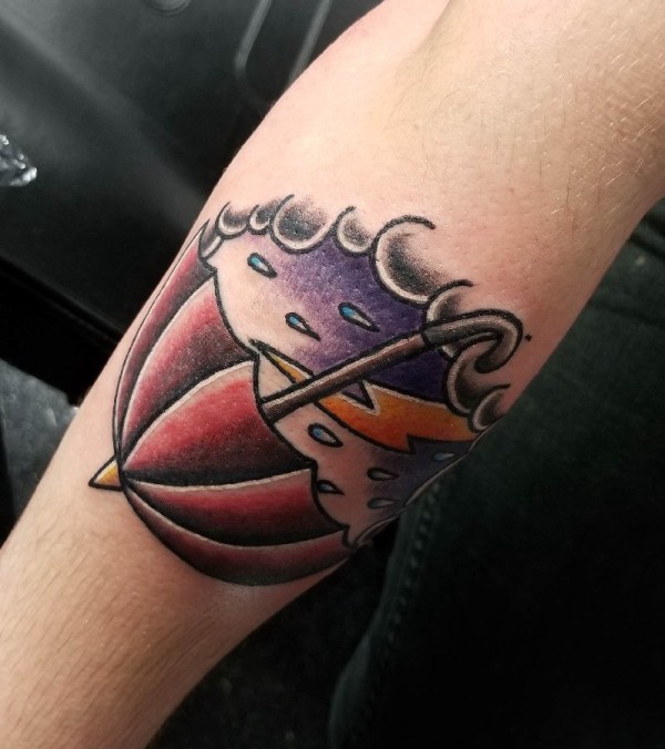 纹身彩绘图片 男生手臂上闪电和雨伞纹身图片
