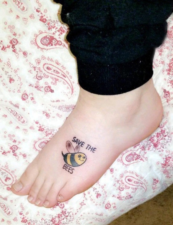 蜜蜂纹身图案 女生脚背上英文和蜜蜂纹身图片