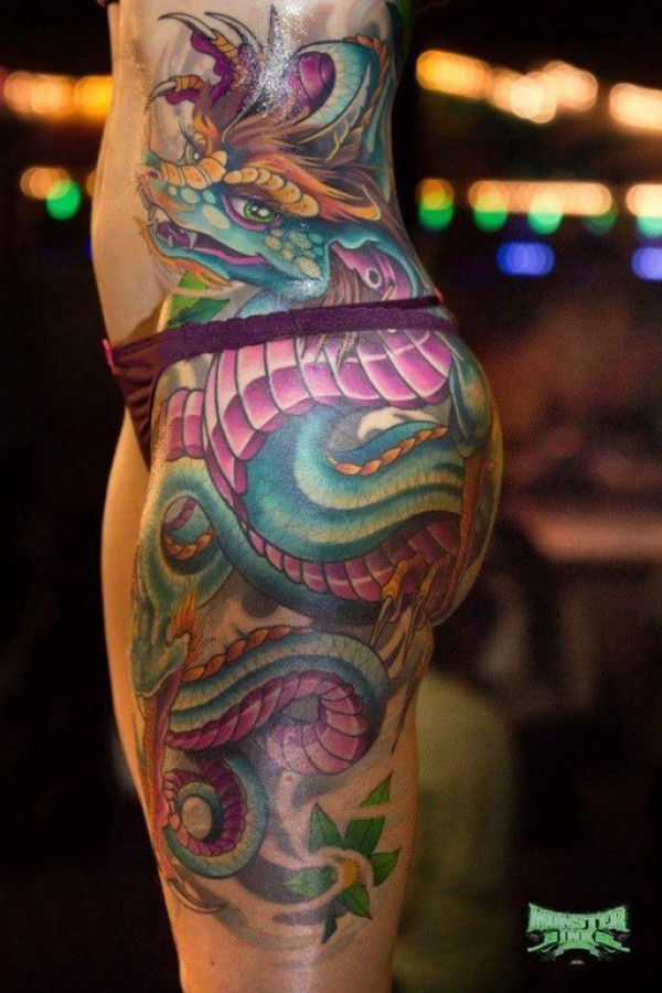臀部纹身 女生臀部彩绘的龙纹身图片