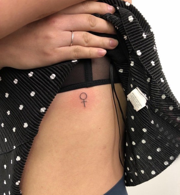纹身符号 女生侧腰上极简的符号纹身图片