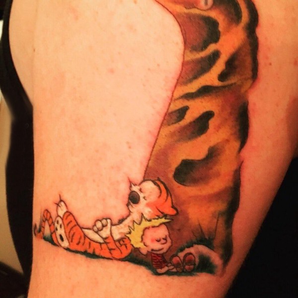 纹身卡通 男生大臂上老虎和人物纹身图片