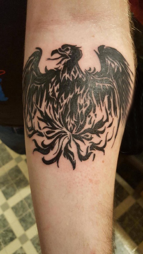纹身火凤凰 男生手臂上黑色的凤凰纹身图片