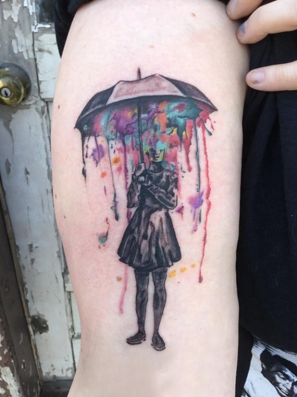 水彩纹身图片 女生大臂上彩绘的人物纹身图片