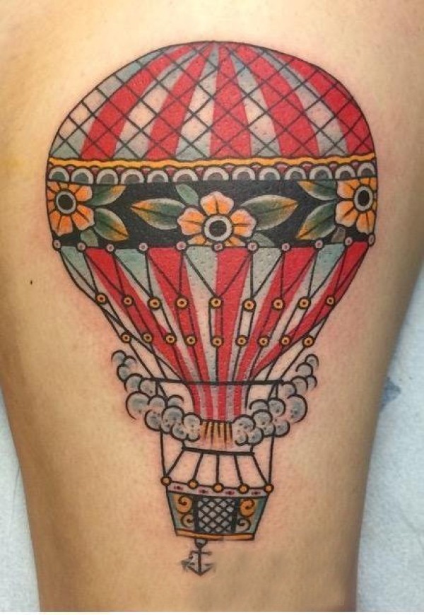 热气球纹身 女生大腿上彩色的热气球纹身图片