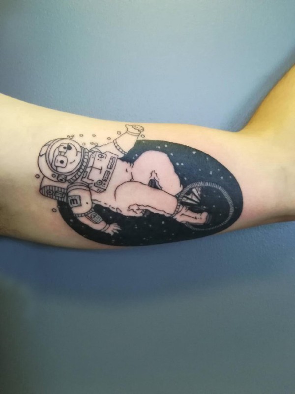 纹身黑色 男生手臂上黑色的宇航员纹身图片