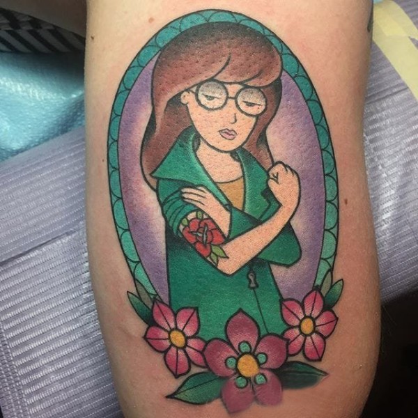 复古卡通红唇美女手臂纹身_卡通纹身图案大全_纹身图吧