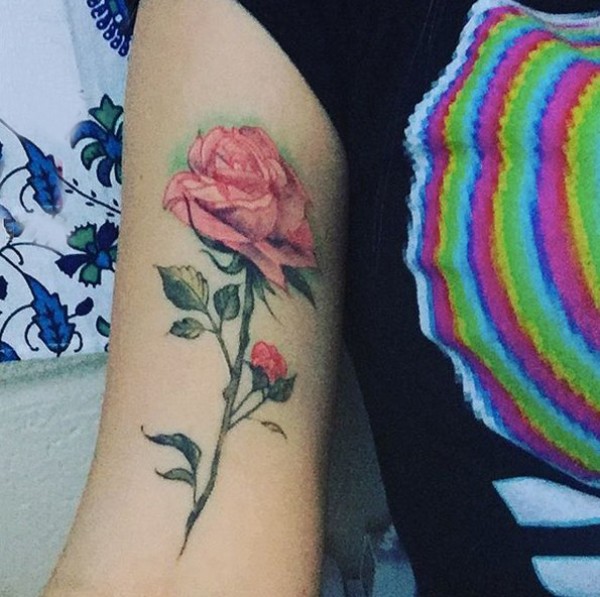 枪炮玫瑰纹身 男生手臂上娇艳的玫瑰纹身图片