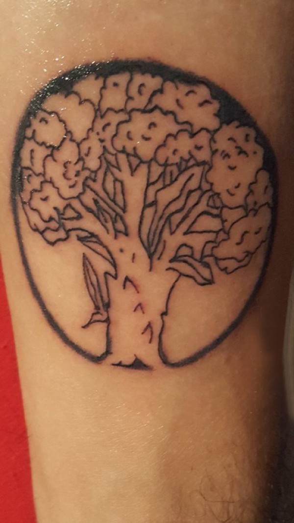 手部树木纹身 男生手臂上圆形和大树纹身图片