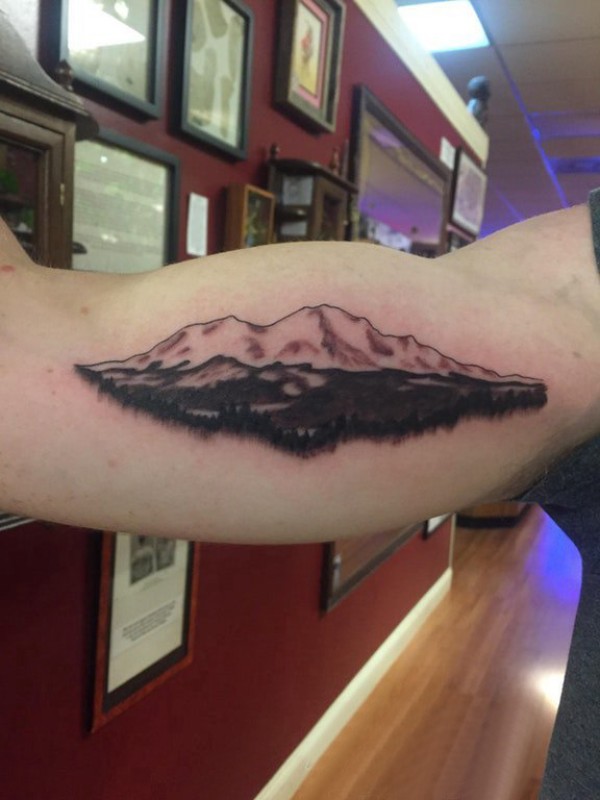 山峰的纹身 男生手臂上黑色的山脉纹身图片