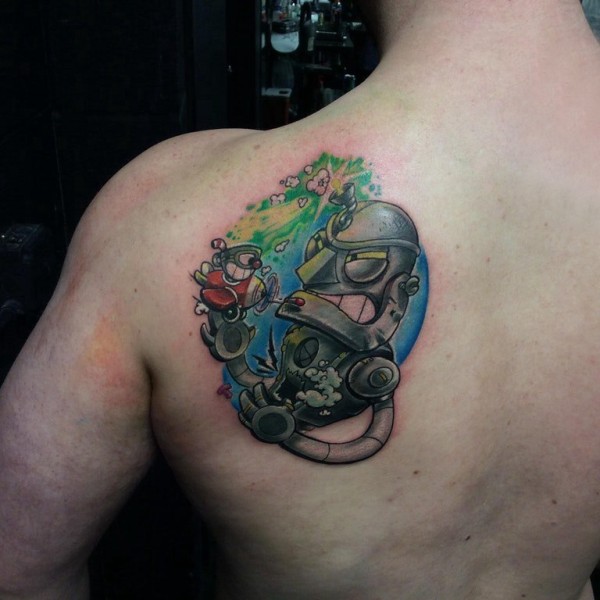 机器人纹身 男生后背上彩色的机器人纹身图片