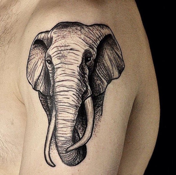 大臂纹身图 男生大臂上温顺的大象纹身图片