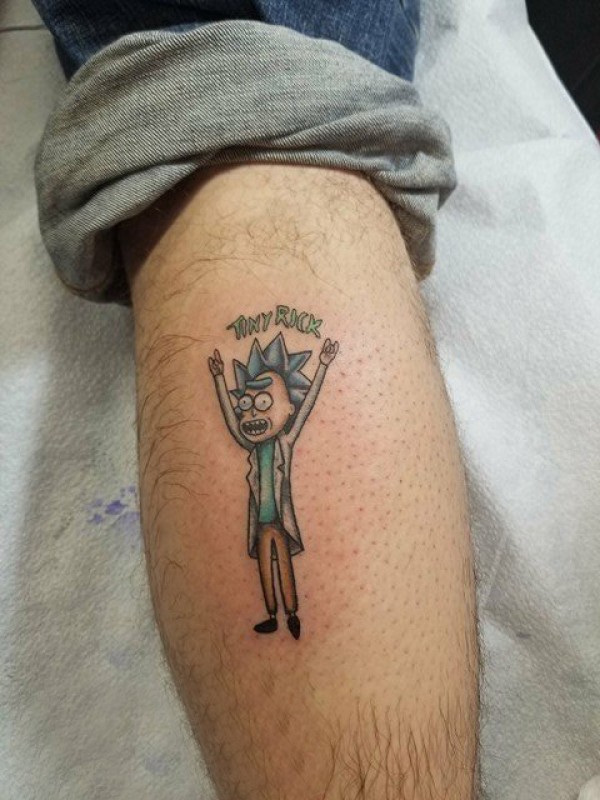 纹身卡通人物 男生小腿上彩绘的卡通人物纹身图片