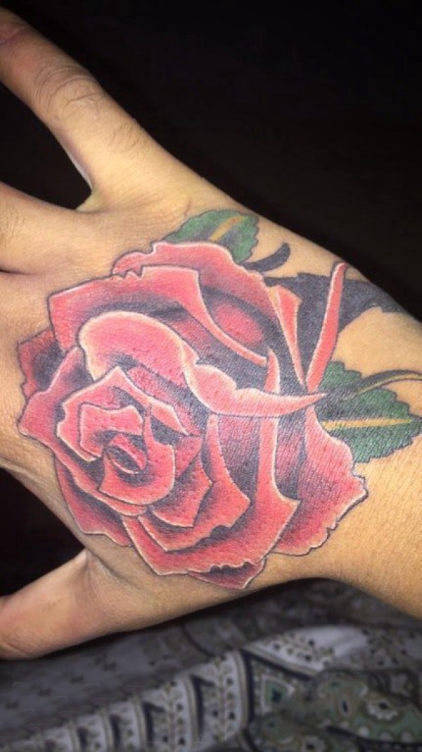 纹身玫瑰花 女生手背上彩绘的玫瑰纹身图片
