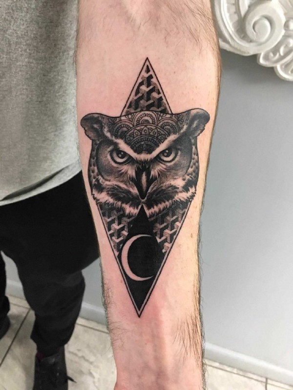 纹身猫头鹰 男生手臂上菱形和猫头鹰纹身图片