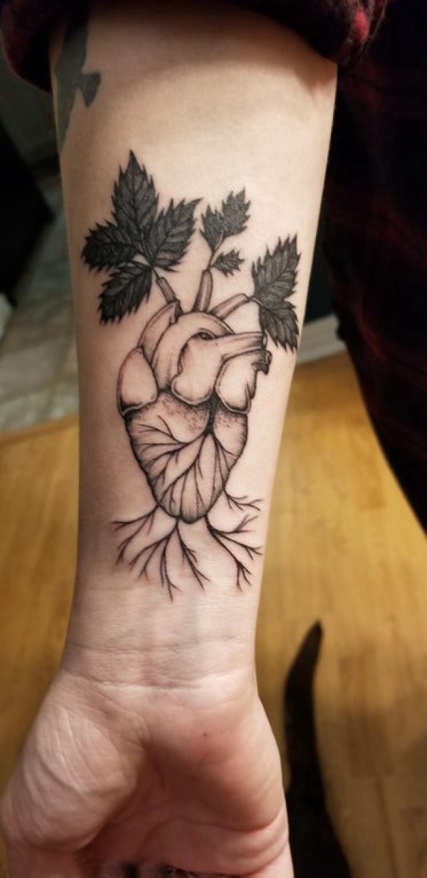机械心脏纹身图案 男生手臂上植物和心脏纹身图片
