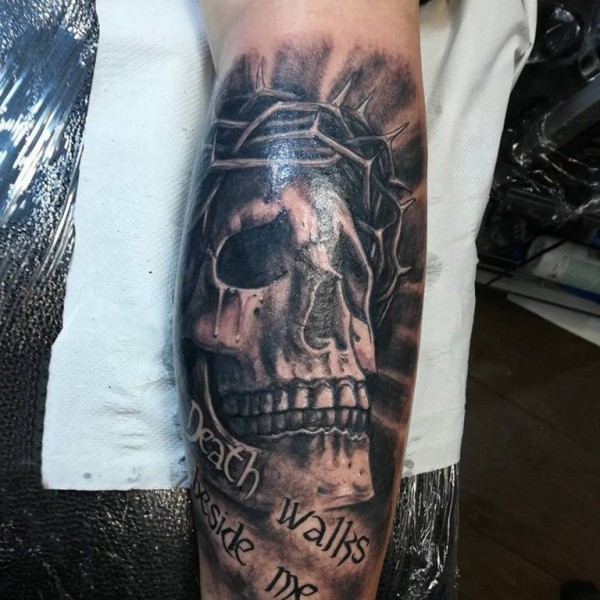 骷髅和英文纹身图案 男生手臂上骷髅和英文纹身图片