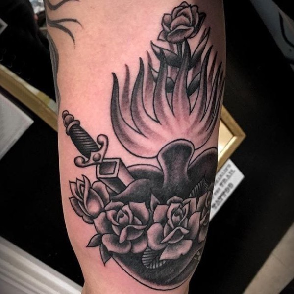 心脏纹身图案 女生手臂上黑灰纹身心脏纹身图案