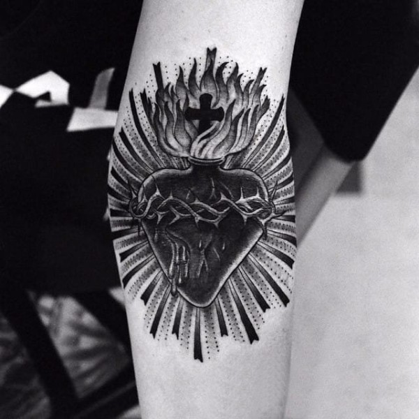心脏纹身图案 女生手臂上黑灰纹身心脏纹身图案