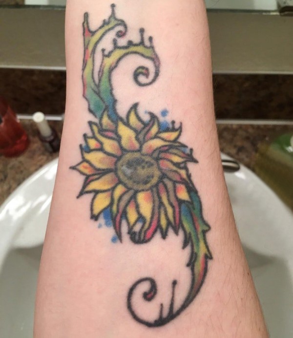 纹身图案花朵 男生手臂上彩色的植物纹身图片