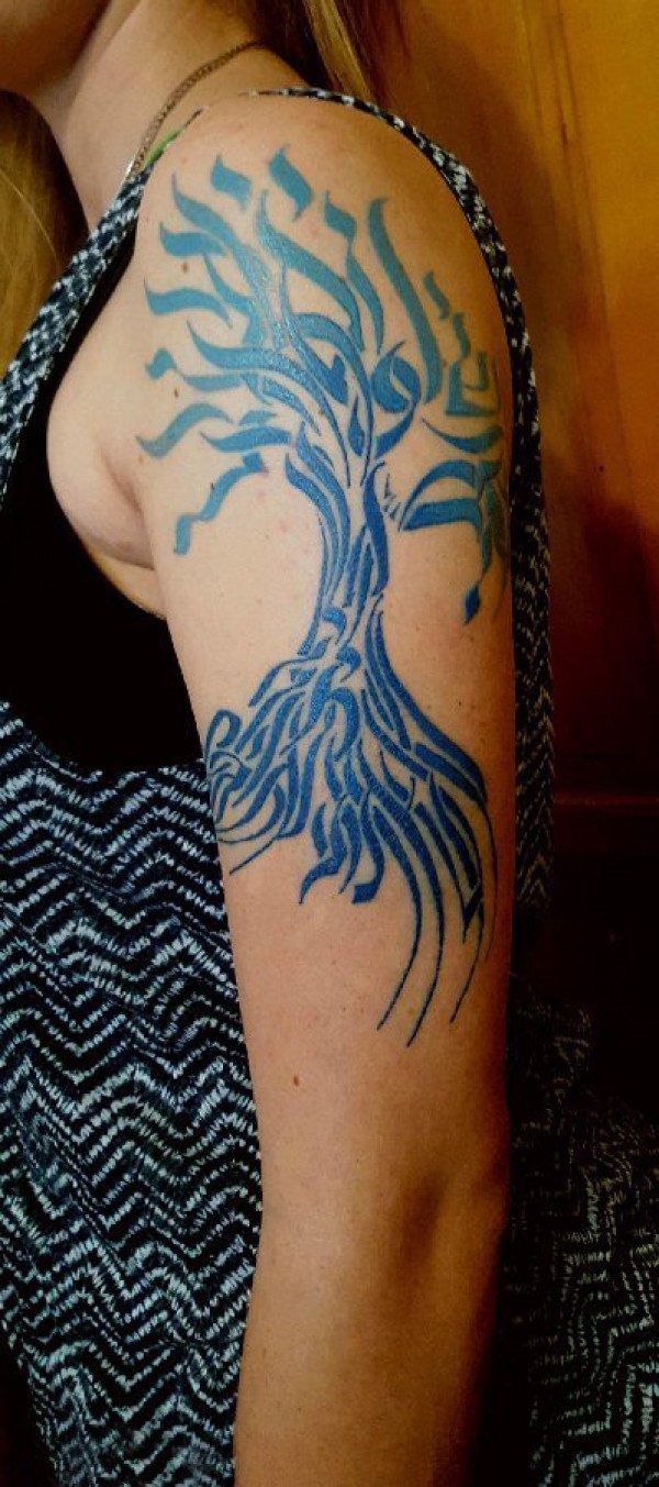纹身树枝 男生大臂上蓝色的树纹身图片