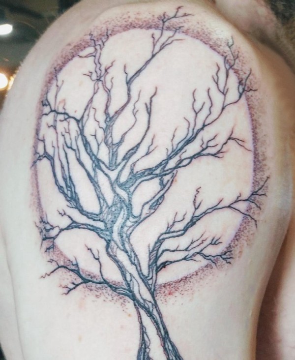 纹身树和月亮纹身图案 男生大臂上纹身树和月亮纹身图片