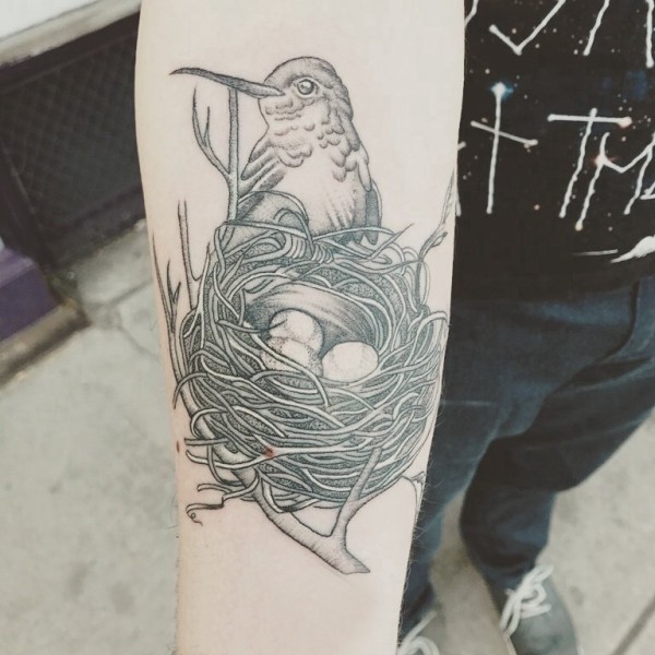 纹身鸟 女生小臂上黑灰的鸟纹身图片