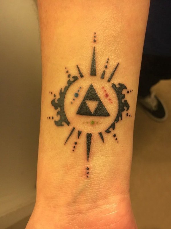几何元素纹身 男生手臂上三角形和圆形纹身图片